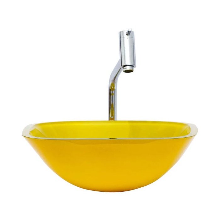 Cuba de vidro Quadrada 31+ Torneira Link + Válvula + Sifão - Amarelo - 31 x 31 x 13 Cm Amarelo