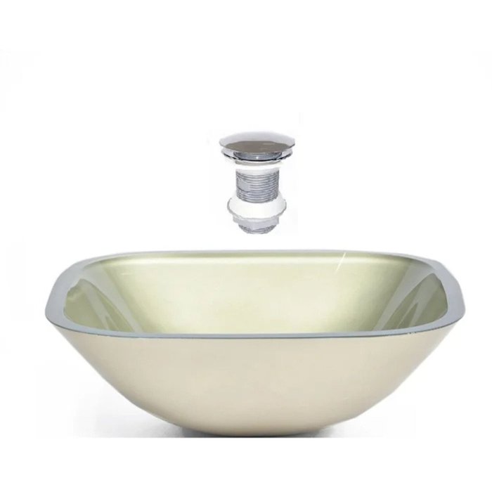 Cuba de Vidro Quadrada 35cm Champanhe + Valvula Click