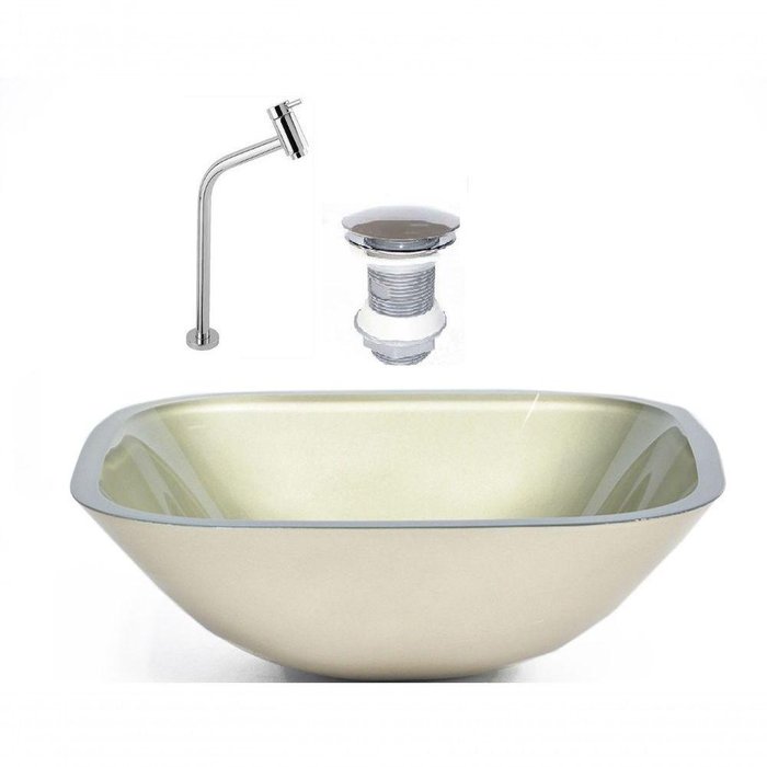 Cuba De Vidro Quadrada 35cm Champanhe + Valvula + Torneira Metal As nossas cubas de vidro são ideais para projetos de decoração em banheiros com alto padrão e bom gosto, pois proporcionam um efeito moderno e único ao ambiente,são instaladas sobre a bancada e por isso realçam com destaque o acabamento do seu banheiro, sem contar a eficiência e praticidade que se leva para a sua casa.