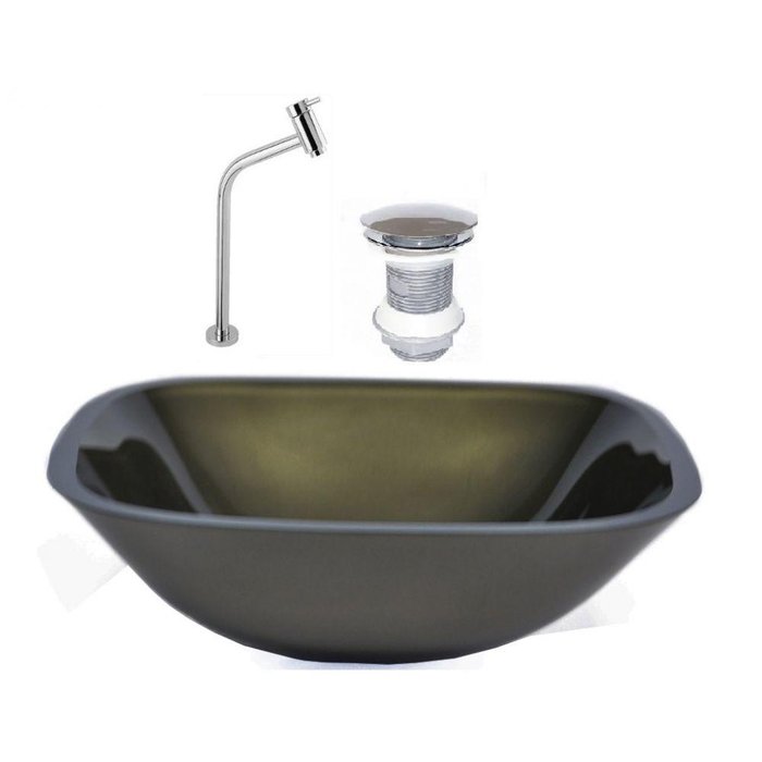 Cuba de Vidro Quadrada 35cm Grafite + Valvula + Torneira