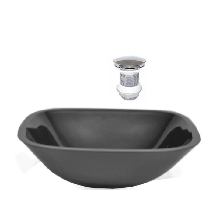 Cuba de Vidro Quadrada 35cm + Valvula Click Preto
