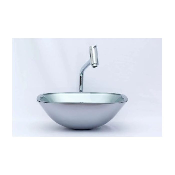 Cuba de vidro Quadrada 36 Cm + Torneira Link + Válvula - Cinza claro - 36 x 36 x 14 Cm