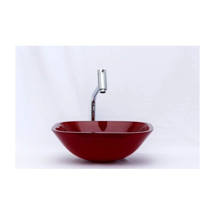 Cuba de vidro Quadrada 36 Cm + Torneira Link + Válvula - Vermelho - 36 x 36 x 14 Cm