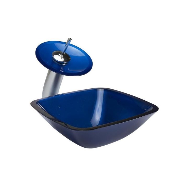 Cuba de vidro quadrada azul,válvula ,sifao, cascata
