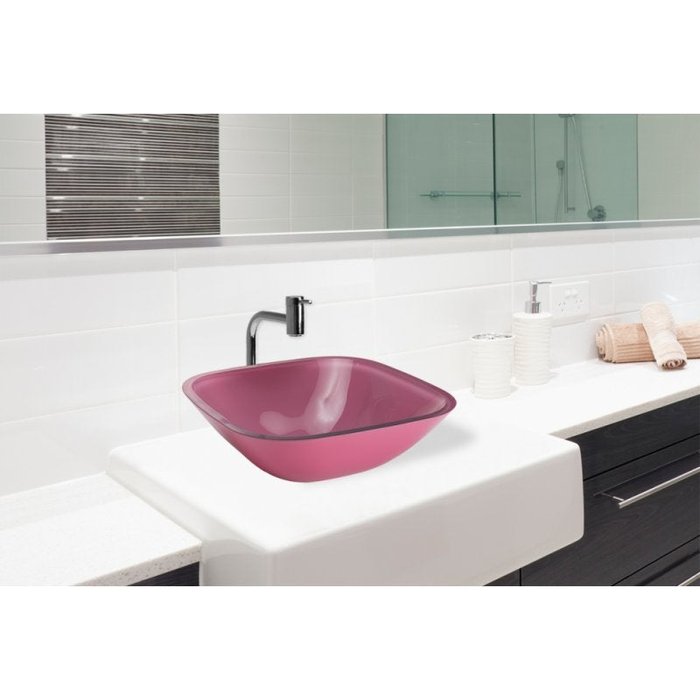 Cuba de vidro quadrada rosa,válvula,sif,torn link