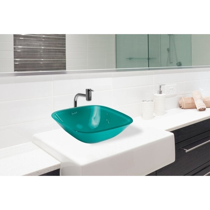 Cuba de vidro quadrada verde agua,válvula,sif,torn link