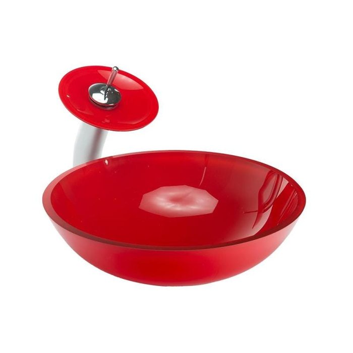 Cuba de vidro redonda 30cm vermelha,válvula ,sifao,cascata