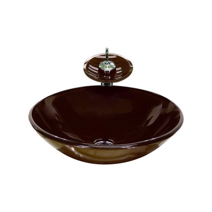 Cuba de Vidro Redonda 35cm + Valvula + Torneira Cascata Marrom
