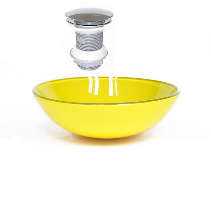 CUBA DE VIDRO REDONDA 42CM AMARELA + VÁLVULA CLICK Amarela