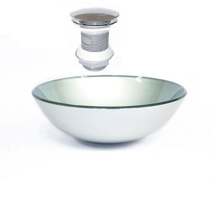 Cuba de Vidro Redonda 42cm Prata + Válvula Click