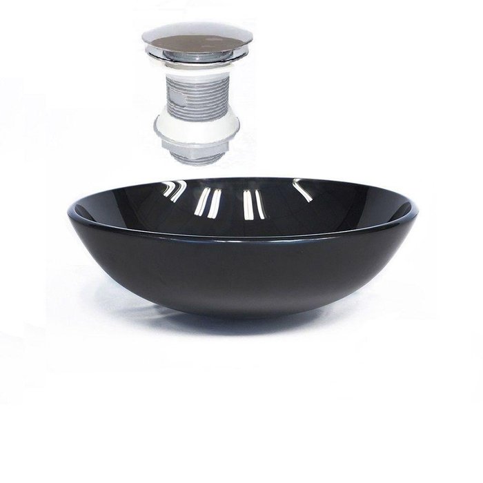 Cuba de Vidro Redonda 42cm Preta + Válvula Click Preta