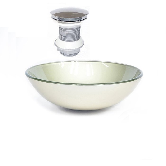 Cuba de Vidro Redonda 42cm + Válvula Click Champanhe