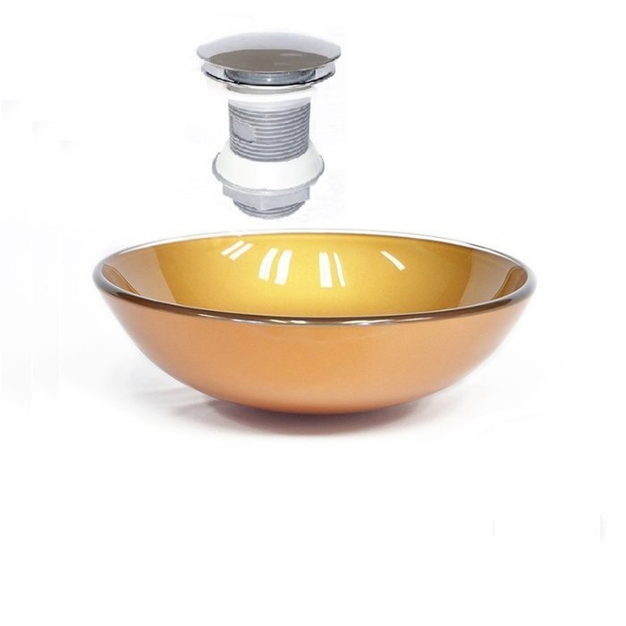 Cuba de Vidro Redonda 42cm + Válvula Click Dourado Real