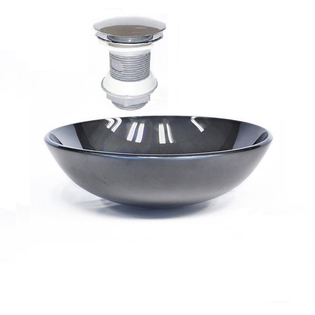 Cuba de Vidro Redonda 42cm + Válvula Click Grafite