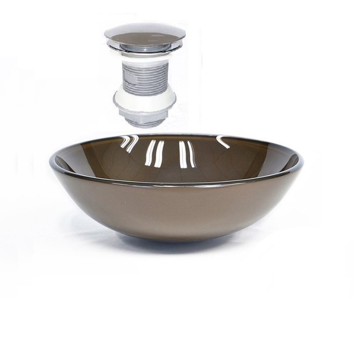 Cuba de Vidro Redonda 42cm + Válvula Click Marrom