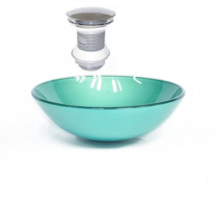 Cuba de Vidro Redonda 42cm + Válvula Click Verde