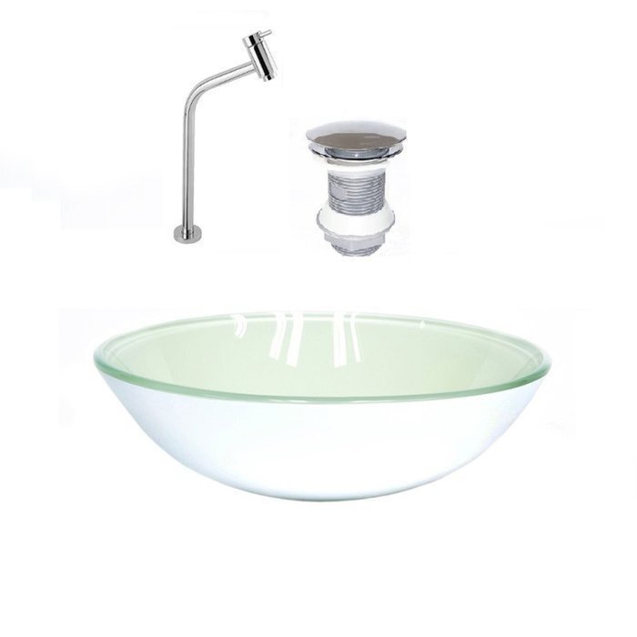 Cuba de Vidro Redonda 42cm + Valvula + Torneira Cromada Branco