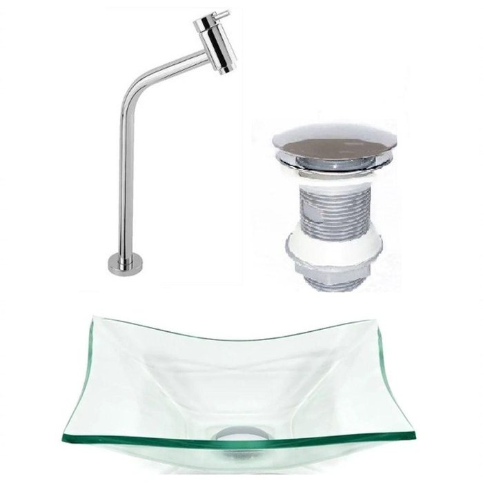 Cuba De Vidro Retangular 39cm Jateada + Valvula Click + Torneira As nossas cubas de vidro são ideais para projetos de decoração em banheiros com alto padrão e bom gosto, pois proporcionam um efeito moderno e único ao ambiente, são instaladas sobre a bancada e por isso realçam com destaque o acabamento do seu banheiro, sem contar a eficiência e praticidade que se leva para a sua casa.