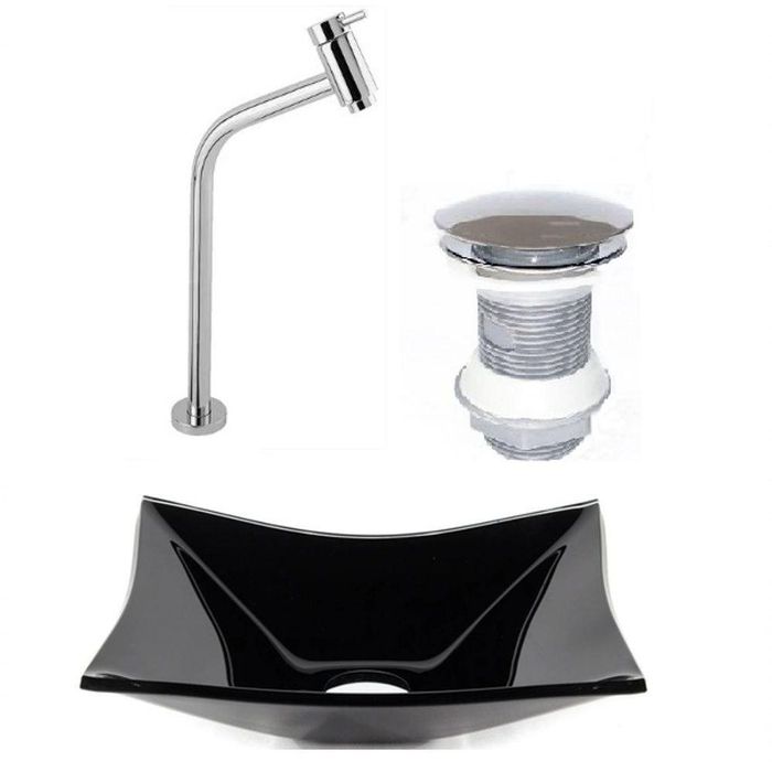 Cuba de Vidro Retangular 39cm Preta + Valvula Click + Torneira Preta