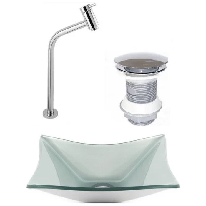 Cuba de Vidro Retangular 39cm + Valvula Click + Torneira
