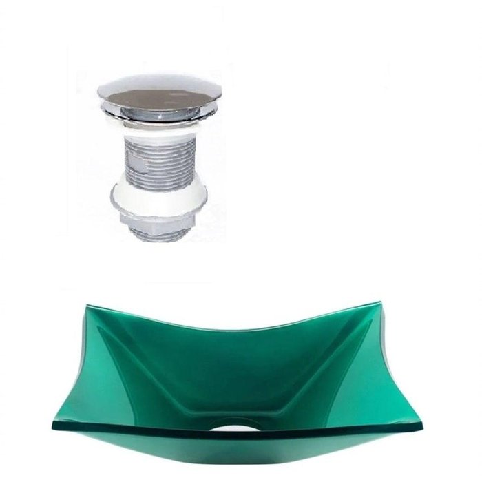 Cuba de Vidro Retangular 39cm Verde + Valvula Click Verde