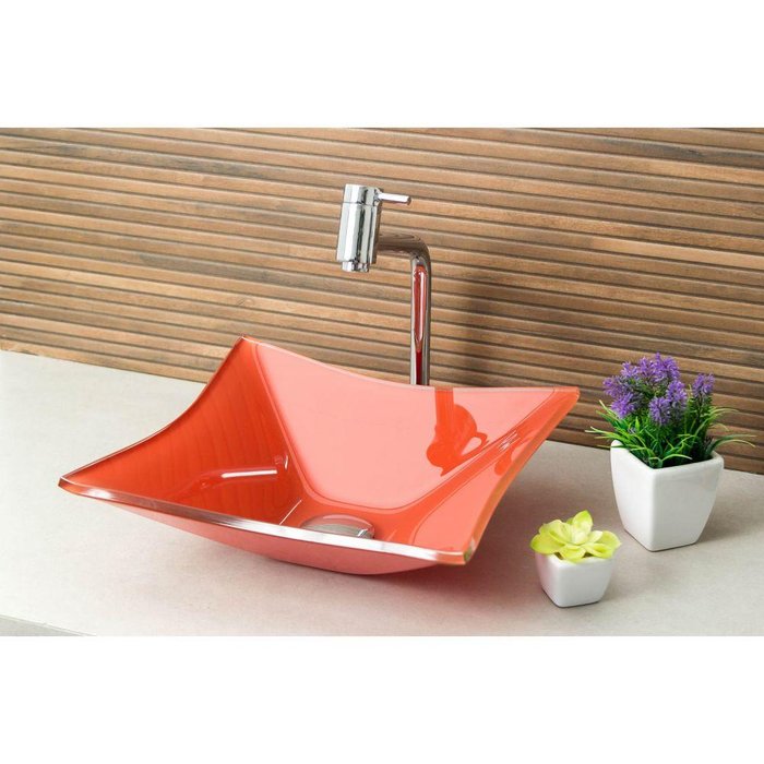 Cuba De Vidro Rt 34 cm Torneira Link + Válvula Laranja
