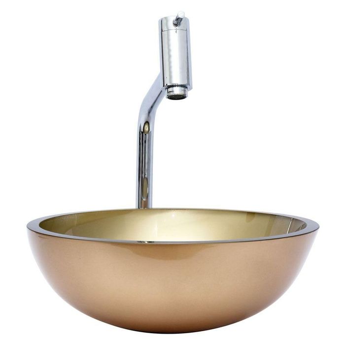 Cuba Dourada Redonda 30cm e Torneira Link e Válvula
