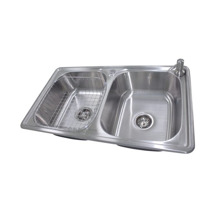 Cuba Dupla De Aço Inox Escovado Pia De Cozinha com Dispenser