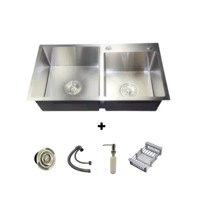 Cuba Dupla Quadrada 78x43 Inox Escovado C/ Acessórios