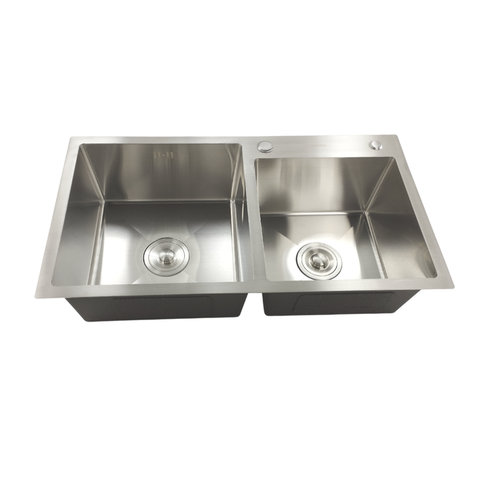 Cuba Dupla Quadrada Para Cozinha Safira Aço Inox Esco 78x43 Escovado Nano Silver