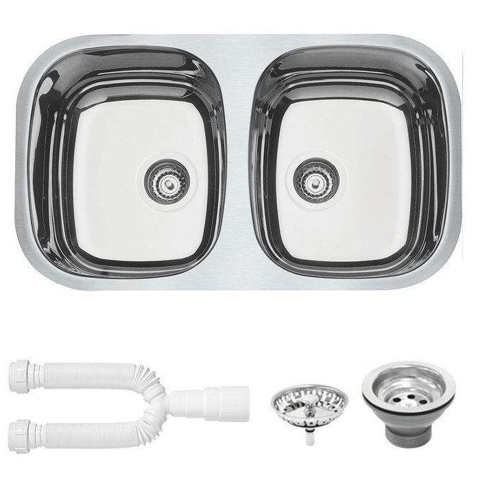 Cuba Dupla Tramontina Isis 2c 34 Bl Prime Aço Inox Alto Brilho 72x40 Cm com Válvula e Sifão