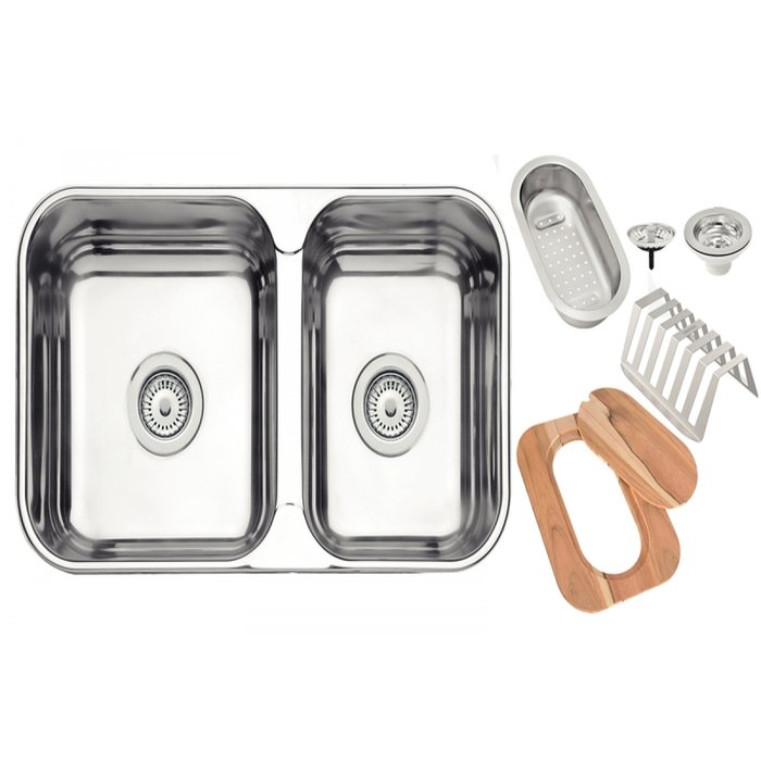 A Cuba Tramontina Isis 2C 34-28 BS fabricada em Aço Inox com 0,7 mm de espessura e acabamento polido, é ideal para todos os tipos de cozinha por oferecer uma boa otimização dos espaços sem abrir mão das vantagens de uma cuba dupla. São 14 cm de profundidade por cuba, tamanho suficiente para manusear as louças confortavelmente. A instalação pode ser realizada por cima ou por baixo da bancada e para deixá-la ainda melhor, ela vem acompanhada de diversos acessórios que otimizam todas as suas tarefas, cesto coador, tábua dupla para corte e um prático escorredor de pratos. Com a Tramontina, você encontra o melhor para sua casa e para sua vida!Aço Inox AISI 304 Instalação: Embutir ou sobrepor Espessura: 0,7 mm. Acabamento: polido. Profundidade da cuba 140 mm. Capacidade: 16 + 12,5 L Acompanha: 2 válvulas de Ø 4 1/2 Cesto Coador Tábua de madeira Escorredor de Pratos Imagens Ilustrativas. As tonalidades e acabamentos (texturas) podem variar de um produto a outro.Para um perfeito funcionamento da cuba, montar inicialmente a válvula. Remover a etiqueta colada na pia. Limpar a cuba com detergentes normais neutros. Usar somente esponja macia ou pano para lavar a pia. Esta peça contém bordas cortantes. Manusear com cuidado. Não usar ácido muriático, água sanitária ou qualquer outro solvente para lavar objetos na pia. Na reforma ou construção, proteger a cuba para não deixar sobre a mesma pó de cimento ou gesso. Enxaguar e secar bem a peça após o uso. Nunca deixar objetos metálicos sobre a peça por períodos muito longos, para evitar a corrosão. Para manter o brilho da sua cuba, recomendamos o uso da pasta para polir e remover manchas em superfícies de aço inoxidável Tramontina .EAN13: 7894693775900 DUN14: 17894693775907 NCM: 7324.10.00 Peso Líquido: 4,2500 kg. Peso Bruto: 5,6000 kg. Metragem: 0,061074
