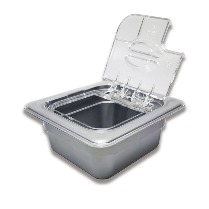 Cuba gastronômica, GN 1/6 x 65 mm, produzida em ABS, com tampa com dobradiça.