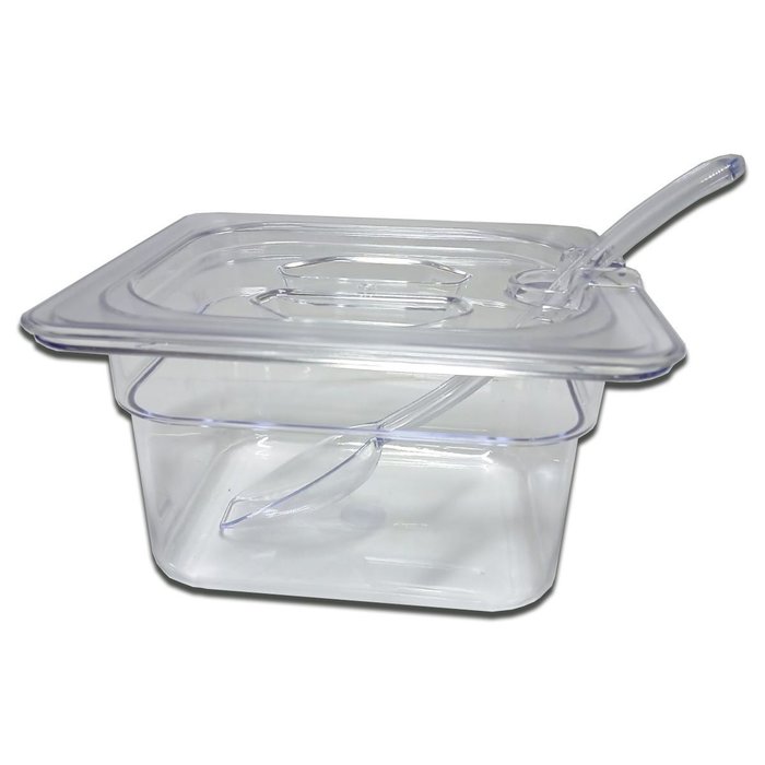Cuba Gastronômica Policarbonato GN 1/6X100 mm 1,5L com TAMPA COM ABERTURA + COLHER