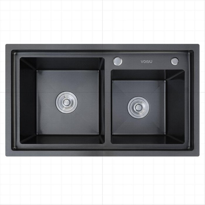Cuba para cozinha fabricada em aço inox 304 com acabamento/cor preto - Marca VONU | Modelo PISA | Cod. VN03003. Tamanho: 78cm(comprimento), 45cm(largura) e 22cm(altura). Acompanha dosador de sabão detergente de plástico, cesta escorredora em aço inox/plástico, tábua de corte, ralo e acessórios para conexão hidráulica.