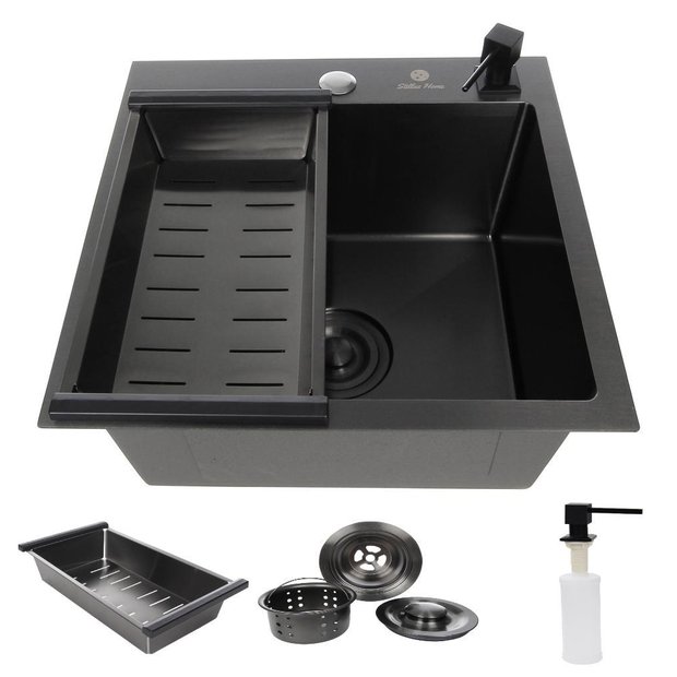 Cuba Gourmet Quadrada Aço Inox 304 Preta Com Acessórios 44x44