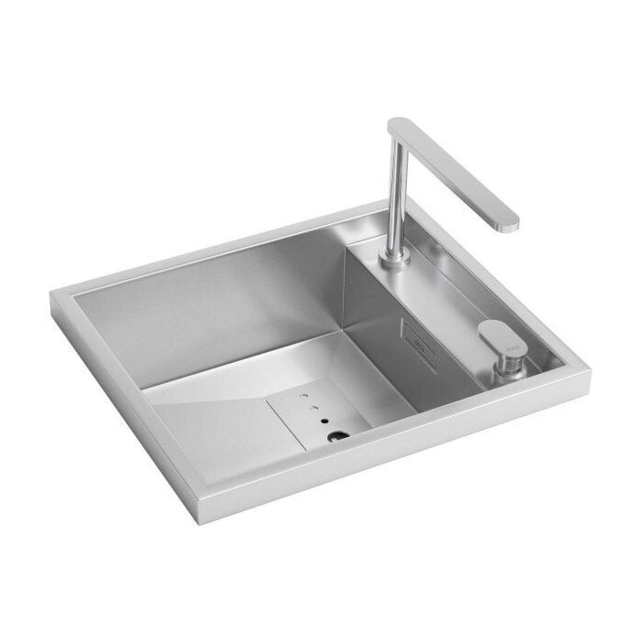 A linha Supra é uma solução completa. Ideal para quem quer praticidade aliada a design e tecnologia diferenciada. Além de ter uma área útil de trabalho em um tamanho ideal e confortável, possui monocomando embutido de acionamento independente e bica retrátil. O fundo facetado valoriza o design de linhas retas e a válvula de escoamento oculta deixa sua aparência ainda mais moderno e clean.