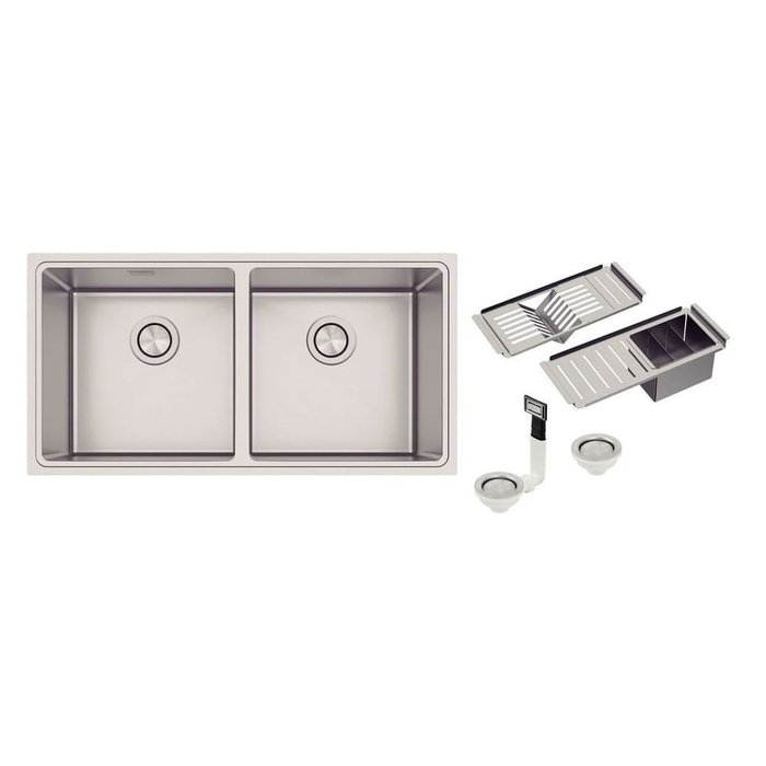 CUBA INOX QUADRUM 2C 40 ACETINADO + ACESSORIOS 89,0X46,0X20,5 - TRAMONTINA
