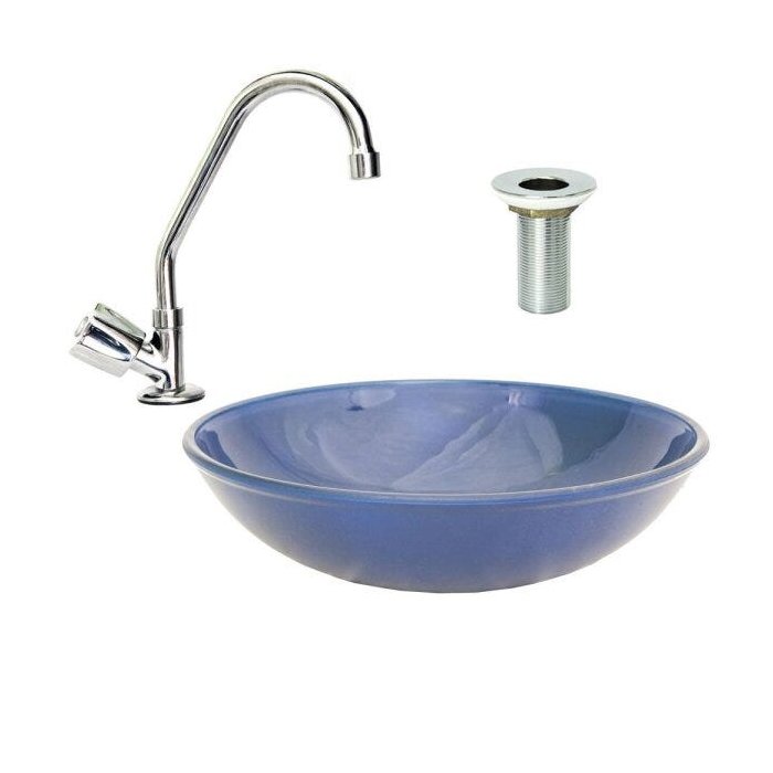Cuba Lisa 35 Cm Vidro Azul e Válvula Torneira Redonda