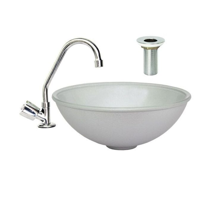 Cuba Lisa Sem Aba Vidro Cinza e Válvula Torneira Redonda