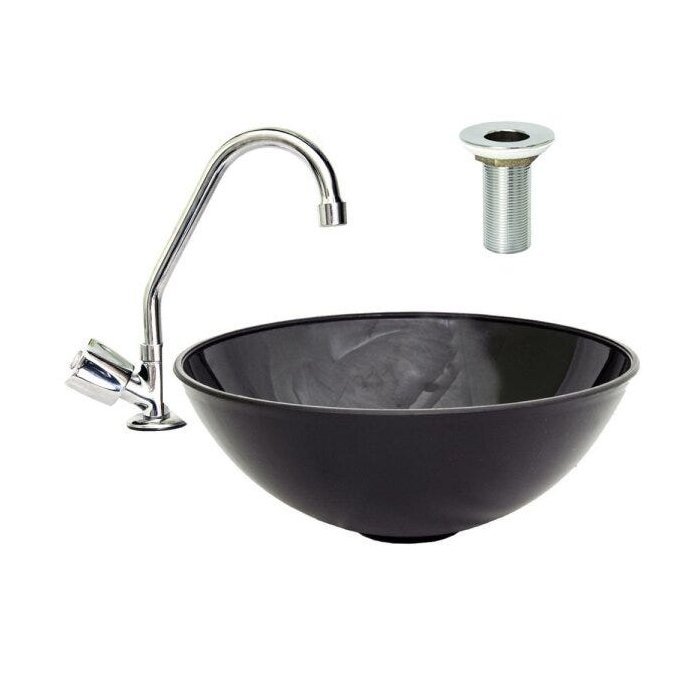 Cuba Lisa Sem Aba Vidro Preta e Válvula Torneira Redonda