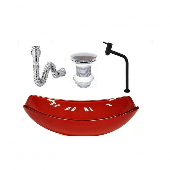 Cuba Oval 46cm Vermelho+Valvula+Torneira Metal Preta+Sifao Vermelho