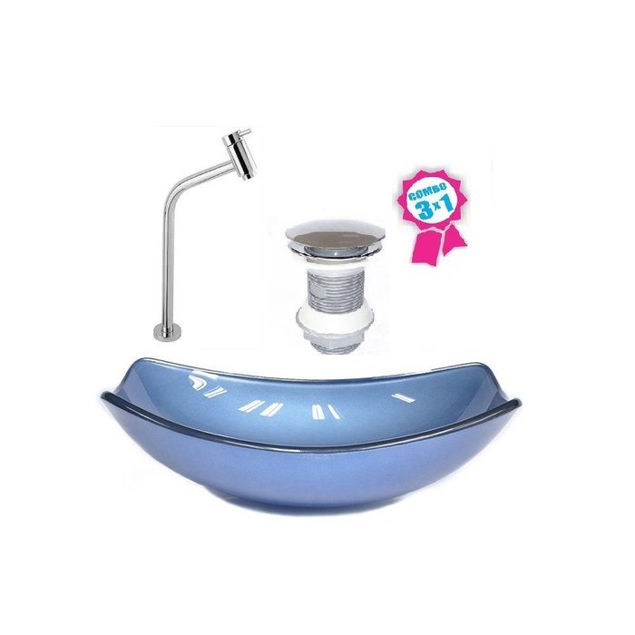 Cuba De Vidro Oval Chanfrada 51cm Azul + Válvula Click + Torneira Metal As nossas cubas de vidro são ideais para projetos de decoração em banheiros com alto padrão e bom gosto, pois proporcionam um efeito moderno e único ao ambiente, são instaladas sobre a bancada e por isso realçam com destaque o acabamento do seu banheiro, sem contar a eficiência e praticidade que se leva para a sua casa.