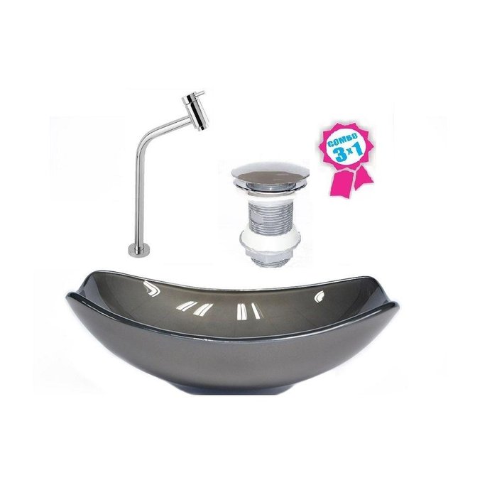 Cuba De Vidro Oval Chanfrada 51cm Grafite + Valvula Click + Torneira Metal As nossas cubas de vidro são ideais para projetos de decoração em banheiros com alto padrão e bom gosto, pois proporcionam um efeito moderno e único ao ambiente, são instaladas sobre a bancada e por isso realçam com destaque o acabamento do seu banheiro, sem contar a eficiência e praticidade que se leva para a sua casa.