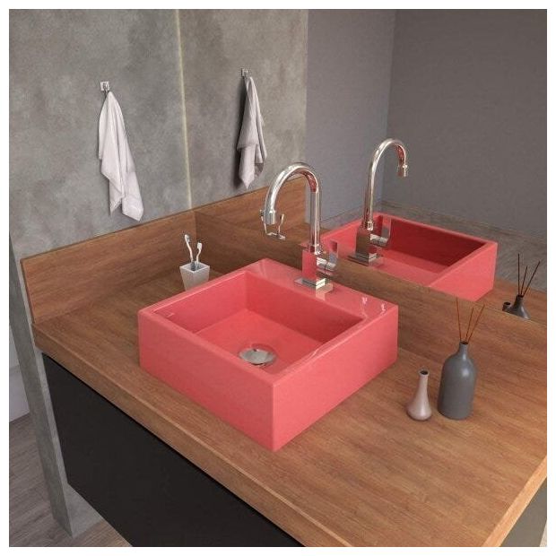 A cuba Q355 tem seu design quadrado e um excelente escoamento de água. Fabricada em mármore sintético com acabamento em Hard Lacca PU, material bem semelhante a louça, muito resistente e mais econômico!