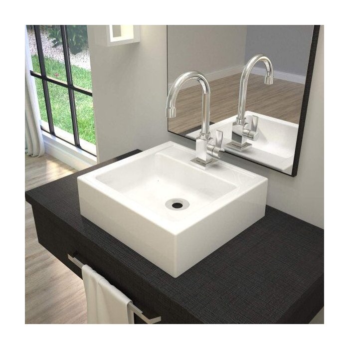 A cuba Q35 Compace tem seu design quadrado e um excelente escoamento de água. Fabricada em mármore sintético com acabamento em Gel Coat, material bem semelhante a louça, muito resistente e mais econômico!
