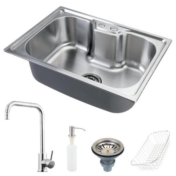 Cuba para Cozinha Gourmet Pia Aço Inox com Acessórios Nawa 50 Cm e Torneira Gourmet Potengi Prata