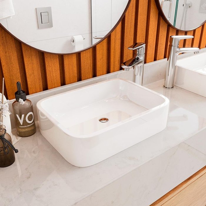 Cuba de apoio em mármore sintético para banheiro. Ideal para dar aquele toque moderno e elegante em qualquer tipo de banheiro. Versátil, o produto pode ser instalado na entrada de banheiros e lavabos, seja em locais comerciais ou residenciais, deixando o ambiente ainda mais bonito.