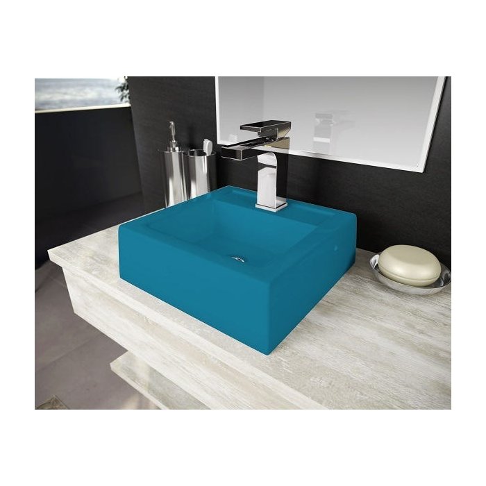 Cuba Pia De Apoio Para Banheiro Toleato Quadrada Bréscia 34 Cm Marmorite Azul Turquesa