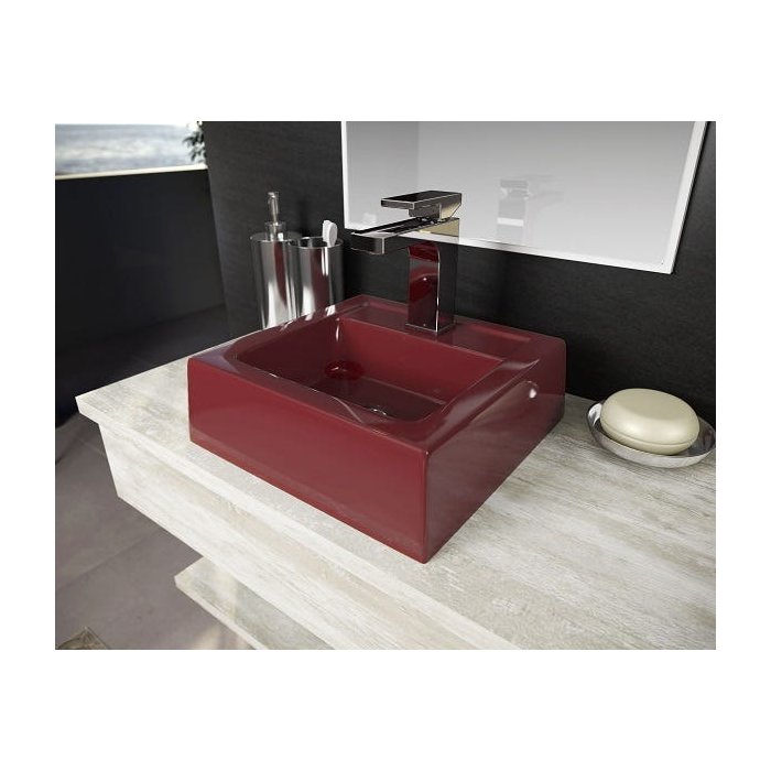 Cuba Pia De Apoio Para Banheiro Toleato Quadrada Bréscia 34 Cm Marmorite Vinho